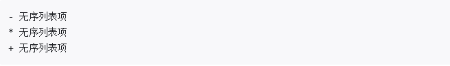 语法:/-/+ + 空格,使用 -、 或 + 表示无序列表。